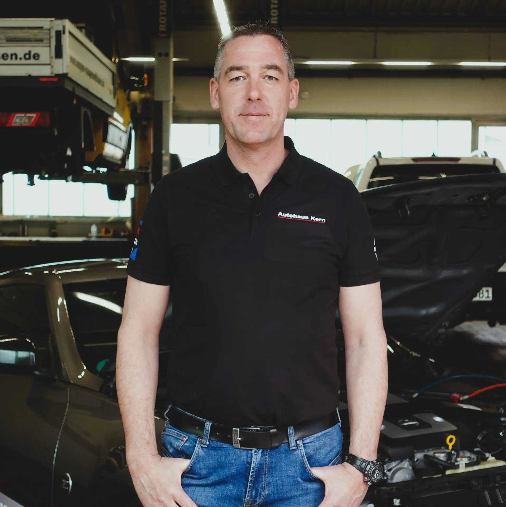 Wir sind ein eingespieltes, familiäres Team. Das bedeutet: kurze Wege, direkte Kommunikation mit dem Chef und gegenseitige Unterstützung an der Hebebühne.